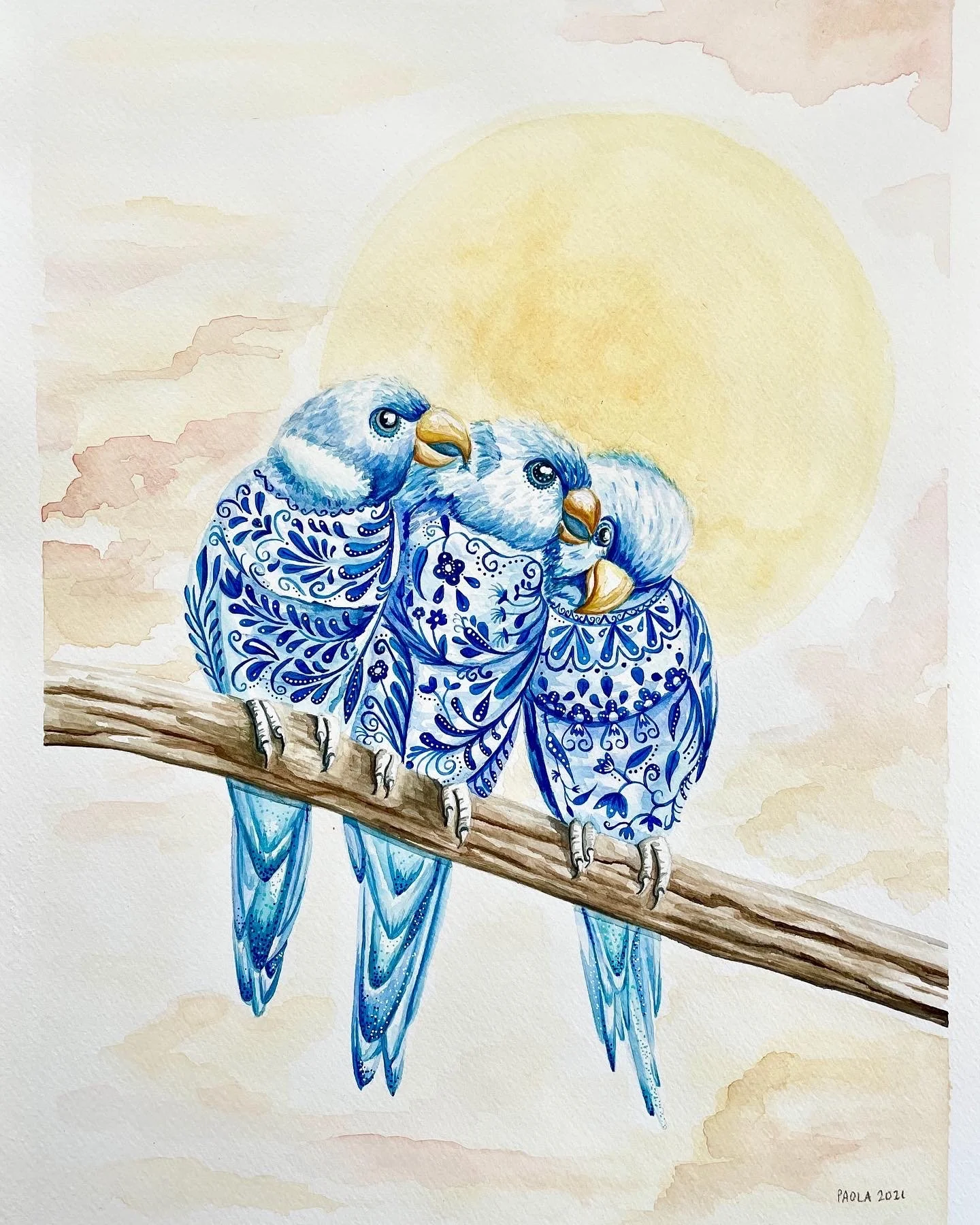 Series of watercolour paintings of Australian Native Birds with a Mexican twist.