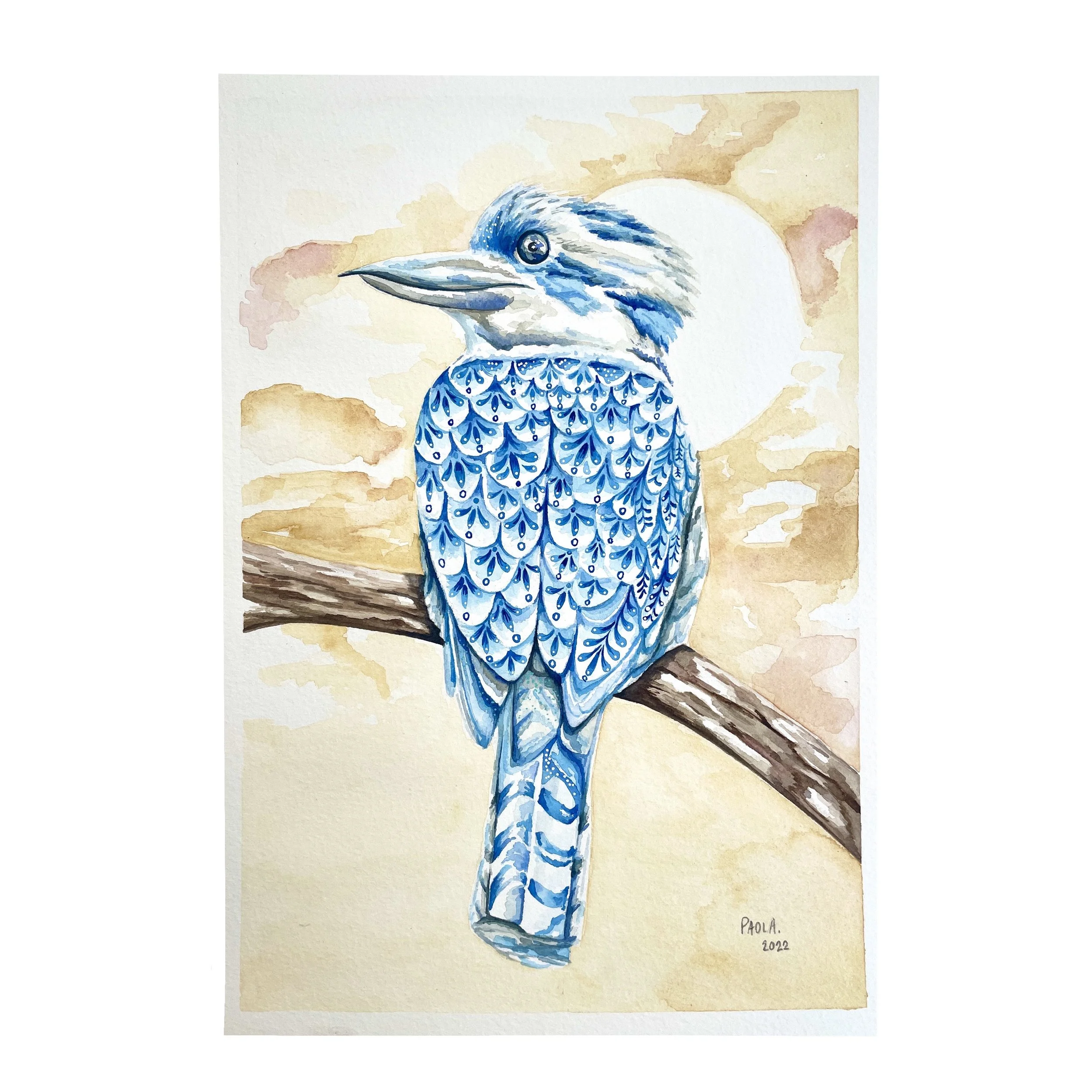 Cheeky Australian laughing kookaburra in a Talavera dress.